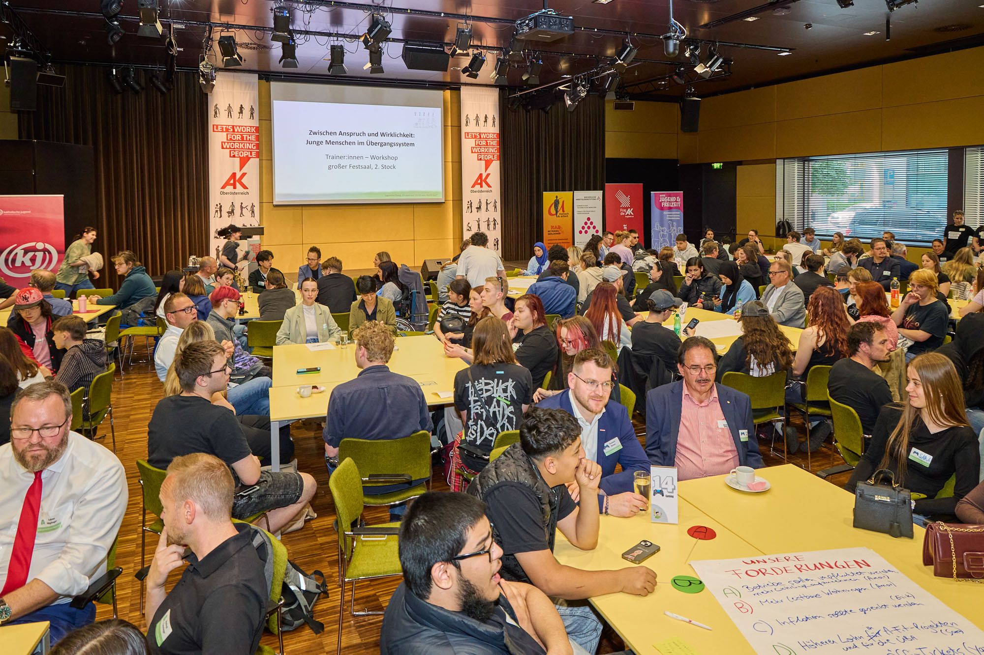 Am 21. Mai 2025 trafen sich rund 200 arbeitssuchende Jugendliche im Kongresssaal der Arbeiterkammer Oberösterreich zur Veranstaltung „Jugend im Dialog“. Über 60 Entscheidungsträger*innen und Verantwortliche aus Politik, Kirche, Wirtschaft und Interessensvertretungen nahmen sich Zeit, zuzuhören, nachzufragen und mit den jungen Menschen ins Gespräch zu kommen. Im Fokus standen zentrale Lebensthemen wie Krisenbewältigung, finanzielle Belastungen und die Möglichkeiten zur politischen und gesellschaftlichen Mitgestaltung.