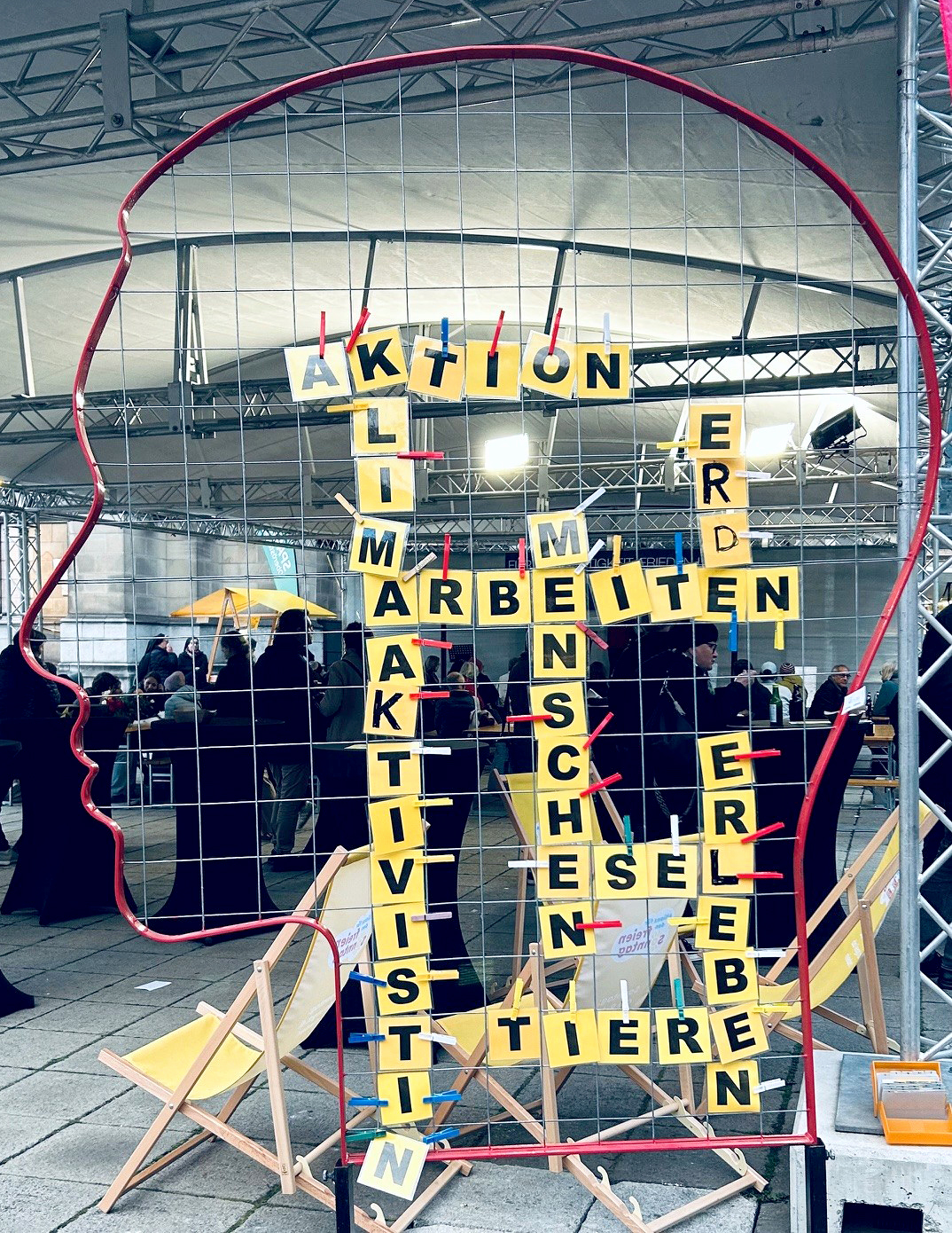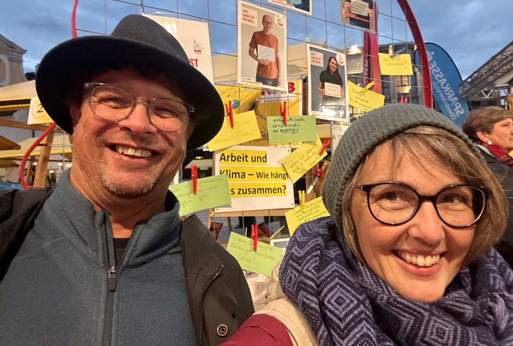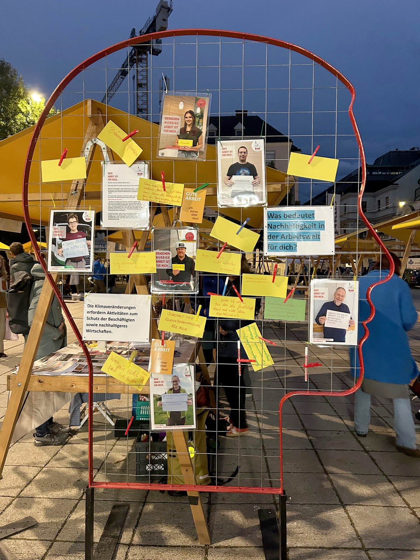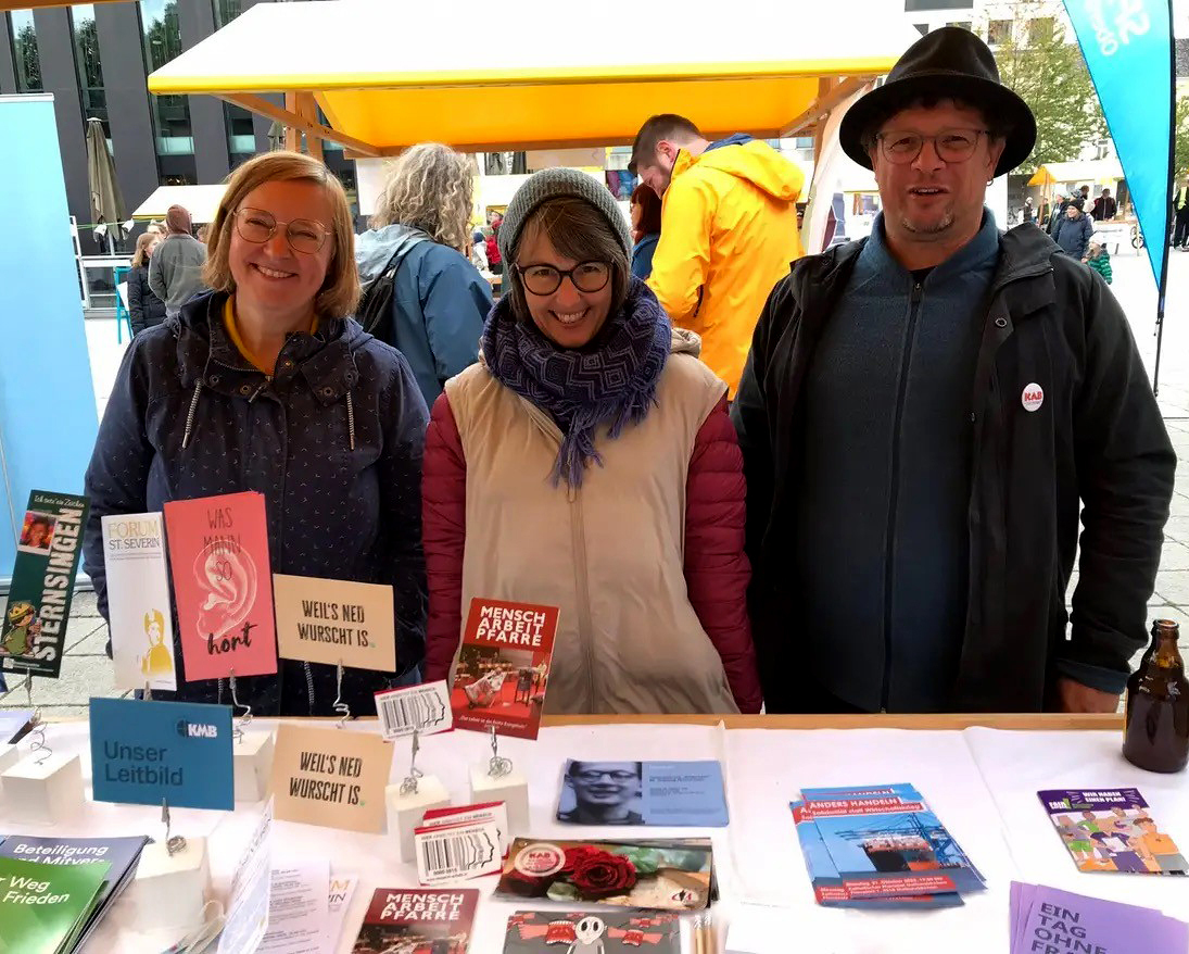 Ein Zeichen der Solidarität, im Sinne des Engagements für die Mitwelt, und ein Zeichen der Kirche, das sie offen für Zusammenarbeit mit nicht-kirchlichen Organisationen ist, war das „Fest für die Erde“. Die KAB war vertreten mit einem Marktstand und lud zur Beteiligung beim Scrabble sowie zum Nachdenken darüber ein, was Gute Arbeit … für die oder den Einzelne:n bedeutet.