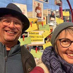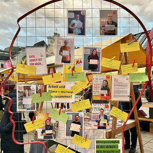 Zugleich wurde auch angeregt, darüber zu reflektieren, welche Wechselwirkungen es zwischen Arbeit und Klima geben könnte. Angefangen von Hitzetipps bei Arbeiten im Freien bis zu Überlegungen, in welchen Berufen es zu sehr hohen CO²-Emissionen kommt und wo Produktion von Konsumgütern eigentlich keinen direkten Mehrwert für die Gesellschaft abwirft, außer dass durch die Erzeugung von Müll das BIP erhöht wird oder wie die Verwendung von KI und der Ausbau von Digitalisierung den Energieverbrauch in die Höhe schnellen lässt; in dieselbe Kerbe schlägt das Schürfen von Kryptowährung.
