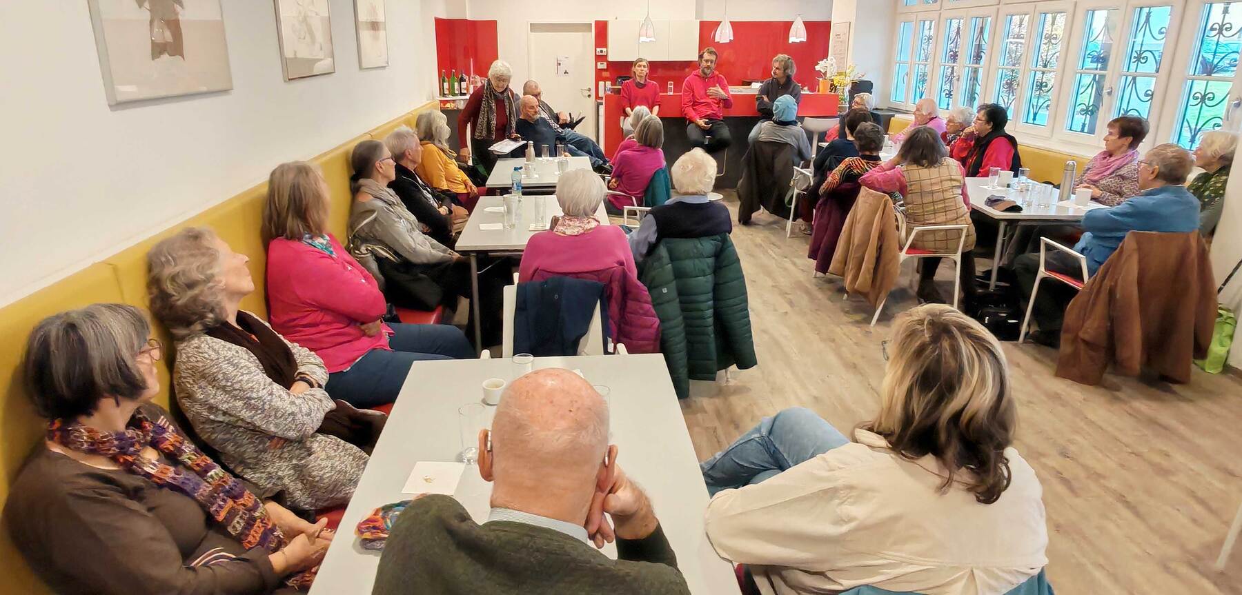 Nach der Möglichkeit zum Einkauf im Geschäft von Betten Reiter wurden wir von der Seelsorgerin Roswitha Kröll im Begegnungsraum des Hauses St. Isidor der Caritas empfangen und konnten uns bei einem kleinen Imbiss stärken. Der Leiter der Wohneinrichtungen für Kinder und Jugendliche, Michael Olchowy, gab uns interessante Einblicke in die Entstehung und die aktuelle Arbeit der Caritas in St. Isidor. Rund 80 Kinder und Jugendliche mit unterschiedlichsten Beeinträchtigungen im Alter von 4 bis 19 Jahren sind auf fünf Häuser in familienähnlichen Gruppen aufgeteilt. Soweit es möglich ist, wird darauf geachtet, dass regelmäßige Besuche bei den Herkunftsfamilien stattfinden.