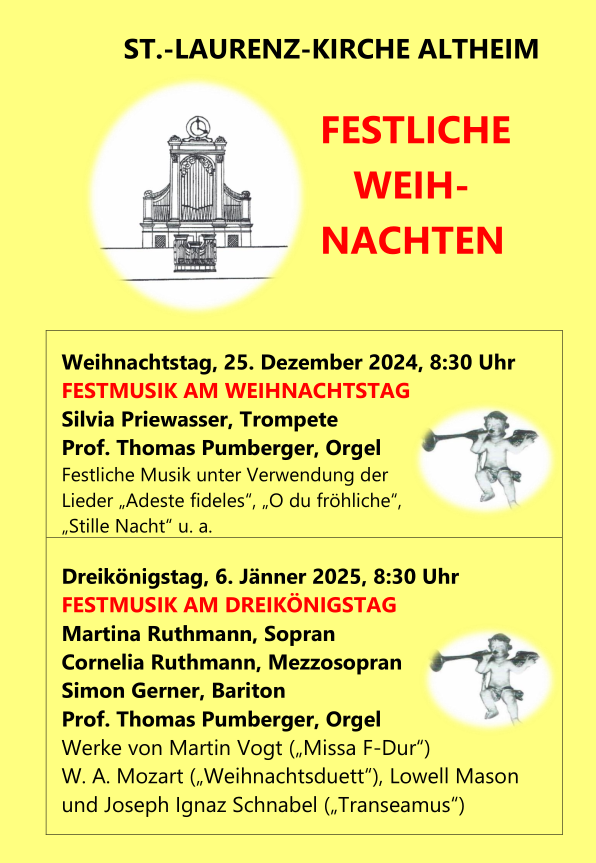 Festliche Weihnachtsmusik 25. 12. 2024 u. 6. 1. 2025
