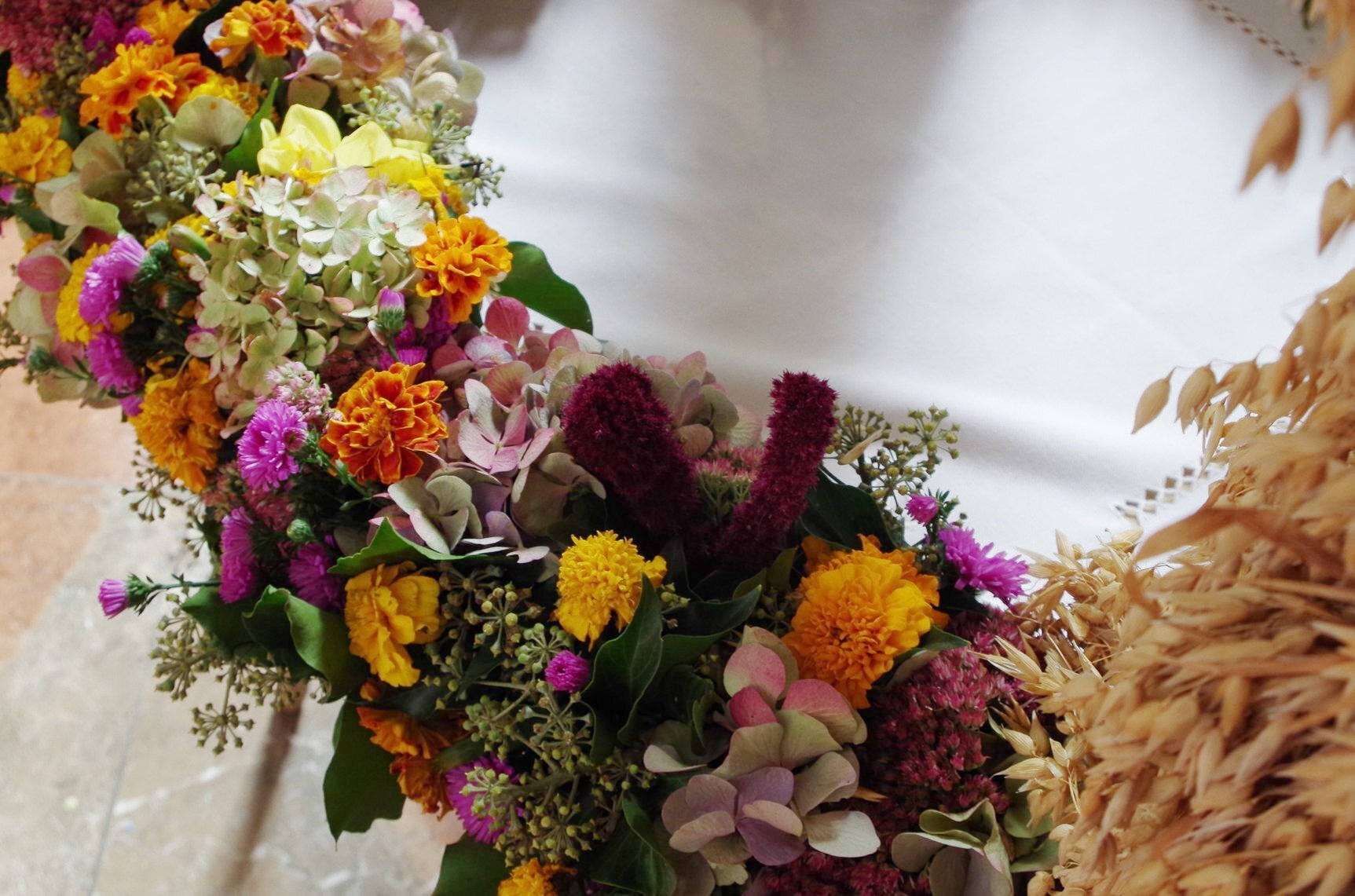 Danke für die Erntekrone an Fr. Anni Simböck u. Helferin.