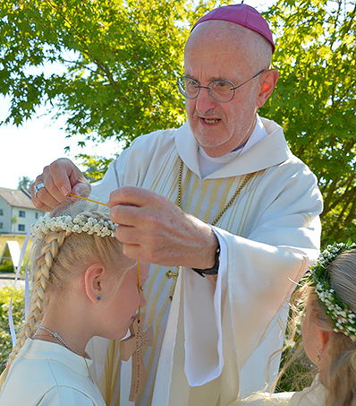 Die Lichtgedanken der 12 Kinder, die sie mit ihrer brennenden Taufkerze sprachen, bewegten die Feiergemeinde, z. B. "Wir nehmen das Licht von der Osterkerze, es soll in unseren Familien brennen.", "Wir nehmen das Licht von der Osterkerze, es soll in unserer Pfarrgemeinde immer brennen.", "Wir nehmen das Licht von der Osterkerze, damit jeder sehen kann, wir sind Freunde von Jesus", "Wir nehmen das Licht von der Osterkerze und wollen die Liebe von Jesus zu den Menschen tragen." Propst Holzinger bedankte sich bei allen, die die Kinder auf die Erstkommunion vorbereitet und für ein so schönes Fest gesorgt haben.
