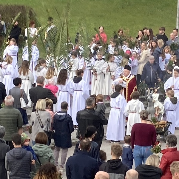 Am Palmsonntag gedenken wir an den Einzug Jesu in Jerusalem. Die Feierlichkeiten werden  daher mit einem Umzug begonnen - der angeführt von einer großen Ministrantenschar - zum Ortsplatz führt.