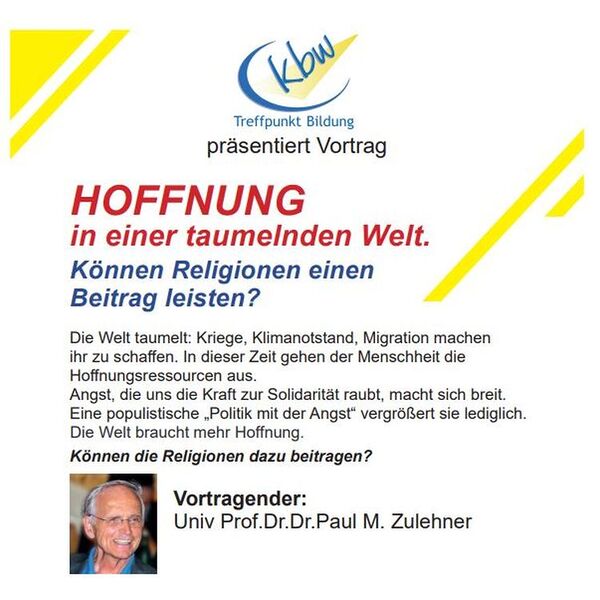 Am 17. Oktober 2024 konnte kbw-Obfrau Anita Eschlböck viele Ehrengäste im vollbesetzten Kultursaal Prambachkirchen zum Vortrag HOFFNUNG in einer taumelnden Welt von Univ Prof.Dr.Dr.Paul M. Zulehner begrüßen.