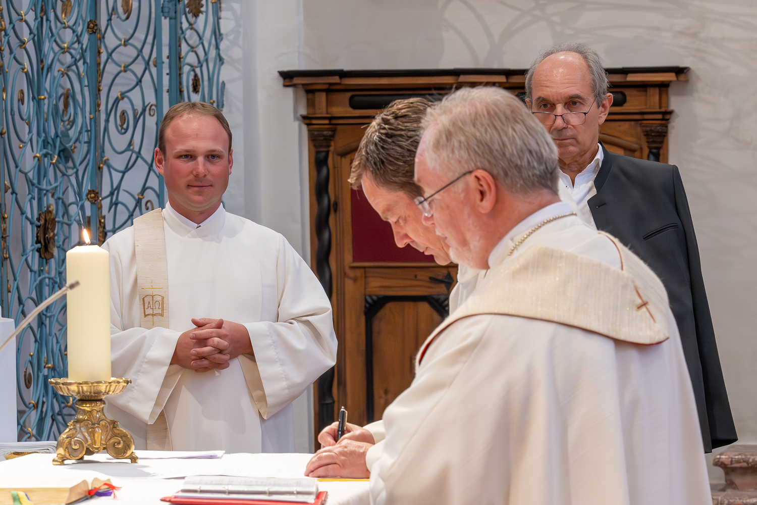 Beim Festgottesdienst bekundeten die Ernannten vor Generalvikar Severin Lederhilger und der versammelten Feiergemeinde ihre Bereitschaft, die Pflichten dieser Ämter auf sich zu nehmen: So versprachen sie, die Pfarre Tassilo-Kremsmünster umsichtig zu leiten, in ihr die Grundvollzüge von Kirche lebendig zu halten, dafür zu sorgen, dass die frohe Botschaft des Evangeliums zeitgemäß verkündet wird, Arme und Bedrängte in die Mitte der Gemeinschaft zu stellen, an Freud und Leid der Menschen Anteil zu nehmen und mit Wertschätzung sowie im Dienst an der Einheit mit allen Haupt- und Ehrenamtlichen in den Pfarrgemeinden und pastoralen Orten zusammenzuarbeiten und dabei Bischof Scheuer gegenüber loyal zu sein.