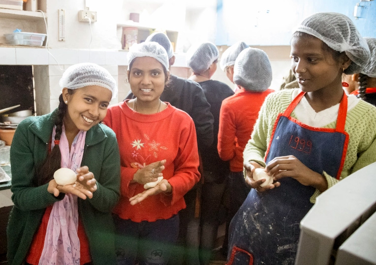 Auch die Bäckerei in Varanasi wurde mit moderner Ausstattung erweitert. Einnahmen aus Workshops, wie dem Backen von Lebkuchenhäusern, finanzieren Winterkleidung für Schulkinder und Bedürftige. Deutschkurse für Auszubildende sowie regelmäßiger Austausch mit Partnerbäckereien in Deutschland eröffnen neue Zukunftsperspektiven.